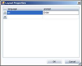 If you want to change the layout’s language or edit existing non-English text, you must change only those line items that have the desired language code in the Language column (e.g., “es” for Spanish). The Document Prompts Window lists all field label prompts, regardless of region or language.