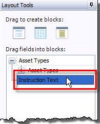 The Instruction Text prompt at the bottom of each Layout Tools Pane allows you to add text to field blocks on layouts for instructional, informational, or any other purpose.