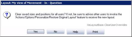 - Selecting the Yes Button prompts the system to run the same process as the RESTORE ORIGINAL LAYOUT command available from the Actions menu for all users.